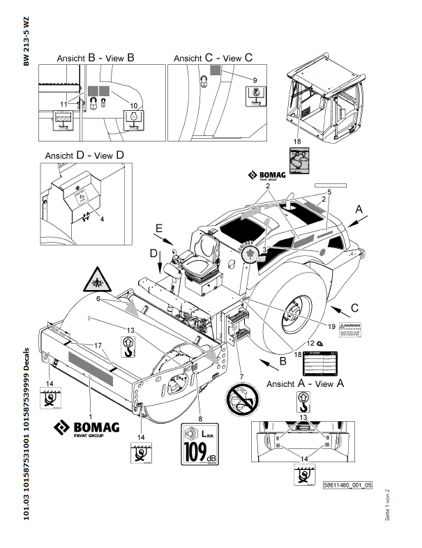 Download Complete Parts Catalogue Manual For Bomag BW 213 DH+P-5 Earth & Sanitary Landfill Construction | Serial Number - 00826283 | Pub. - 101587531001 -> 101587539999
