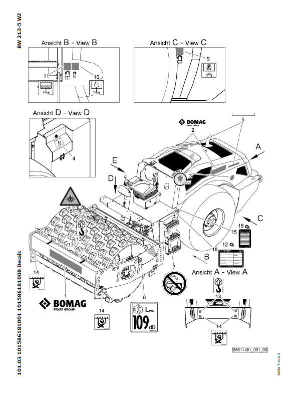 Download Complete Parts Catalogue Manual For Bomag BW 213 PDH-5 Earth & Sanitary Landfill Construction | Serial Number - 00824731 | Pub. - 101586181001 -> 101586189999