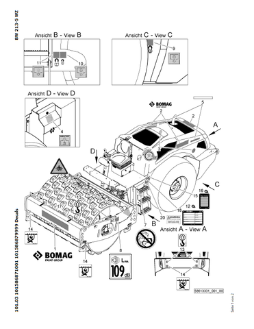 Download Complete Parts Catalogue Manual For Bomag BW 213 PDH-5 Earth & Sanitary Landfill Construction | Serial Number - 00825985 | Pub. - 101586871001 -> 101586879999
