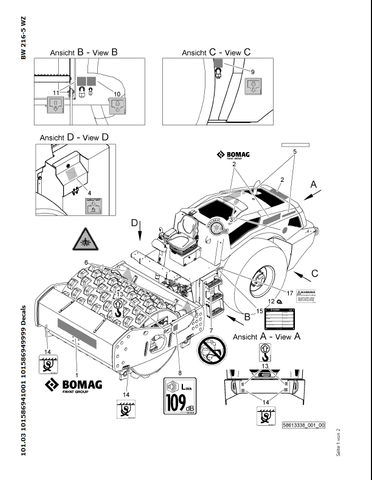 Download Complete Parts Catalogue Manual For Bomag BW 216 PDH-5 Earth & Sanitary Landfill Construction | Serial Number - 00825999 | Pub. - 101586941001 -> 101586949999