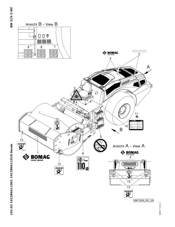 Download Complete Parts Catalogue Manual For Bomag BW 219 D-5 TIER 3 Earth & Sanitary Landfill Construction | Serial Number - 00825219 | Pub. - 101586611001 -> 101586619999