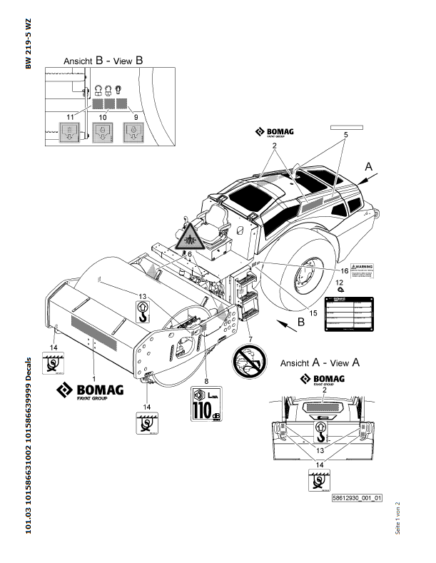 Download Complete Parts Catalogue Manual For Bomag BW 219 DH-5 TIER 3 Earth & Sanitary Landfill Construction | Serial Number - 00825223 | Pub. - 101586631001 -> 101586639999