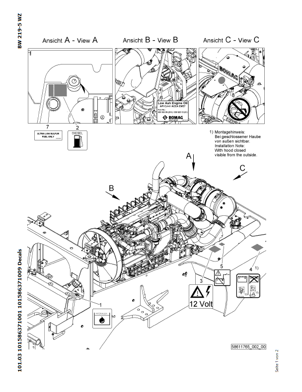 Download Complete Parts Catalogue Manual For Bomag BW 219 PDH-5 Earth & Sanitary Landfill Construction | Serial Number - 00824849 | Pub. - 101586371001 -> 101586371034