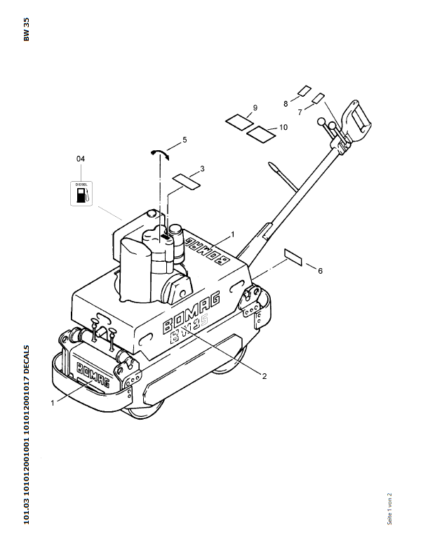 Download Complete Parts Catalogue Manual For Bomag BW 35 Trench Compactor | Serial Number - 00817853 | Pub. - 101012009999