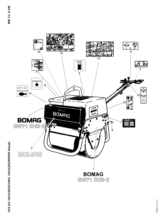 Bomag BW 71, BW 71 EHB-2 Single Drum Vibratory Roller Parts Catalogue Manual 00817601 - PDF File Download