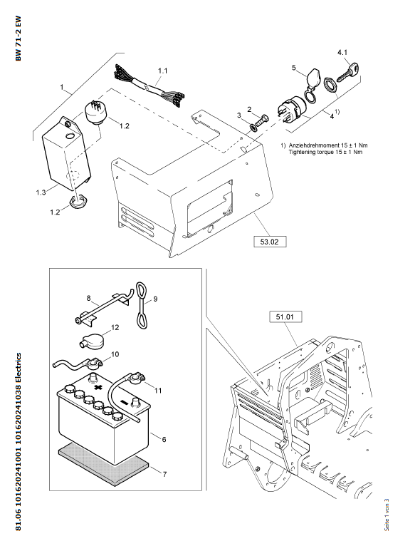 This comprehensive parts catalogue manual for Bomag BW 71, BW 71 EHB-2 Single Drum Vibratory Roller contains detailed parts diagrams and part numbers, providing an easy-to-reference resource for accurate identification and ordering of required spare parts. With serial number 00817601 up to Pub. 101620241245, this product enables efficient maintenance and care.