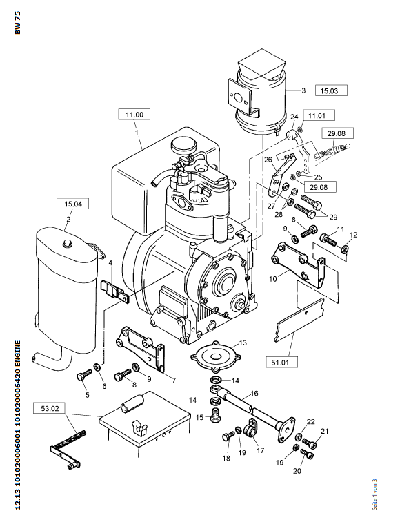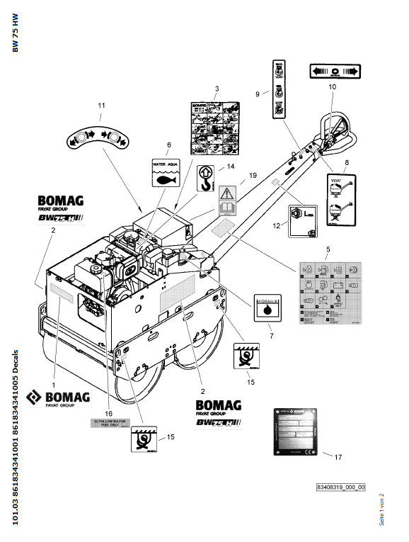 Download Complete Parts Catalogue Manual For Bomag BW 75, BW 75 H Walk-behind Double Drum Vibrat.Roller | Serial Number - 00825327 Pub. 861834341068