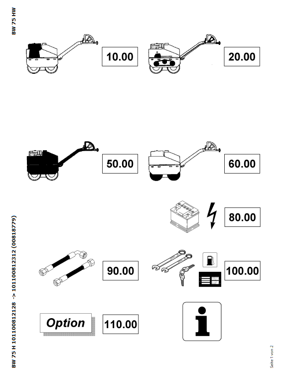 Download Complete Parts Catalogue Manual For Bomag BW 75, BW 75 H Walk-behind Double Drum Vibrat.Roller | Serial Number - 00818779 Pub. 101100812312