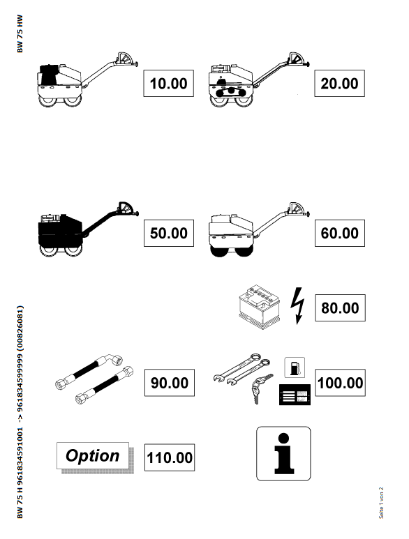 Download Complete Parts Catalogue Manual For Bomag BW 75, BW 75 H Walk-behind Double Drum Vibrat.Roller | Serial Number - 00826081 Pub. 961834599999