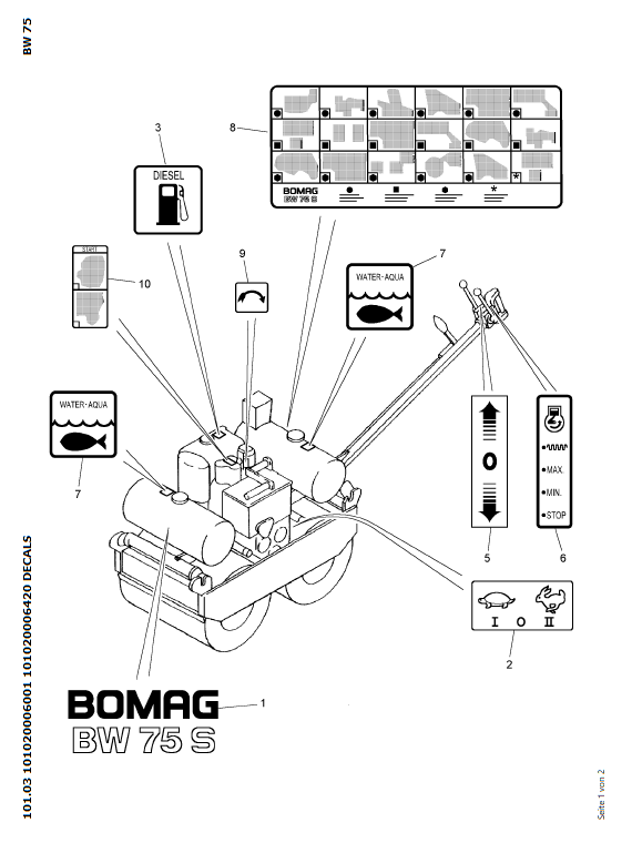 Download Complete Parts Catalogue Manual For Bomag BW 75, BW 75 S Walk-behind Double Drum Vibrat.Roller | Serial Number - 00811406 Pub. 101020006420