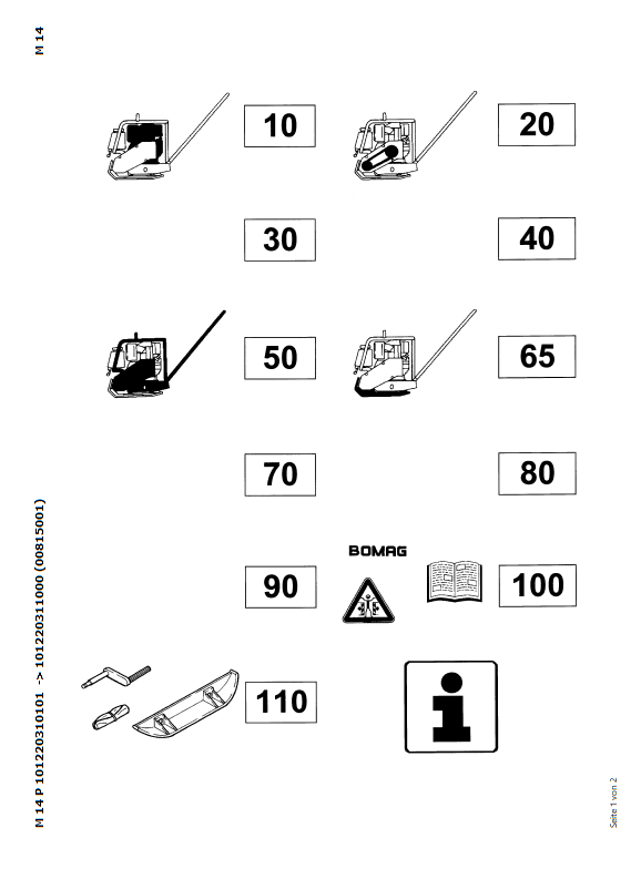 Download Complete Parts Catalogue Manual For Bomag M 14, M 14 P Vibrating Plates Non Reversible | Serial Number - 00815001 | Pub. - 101220311000