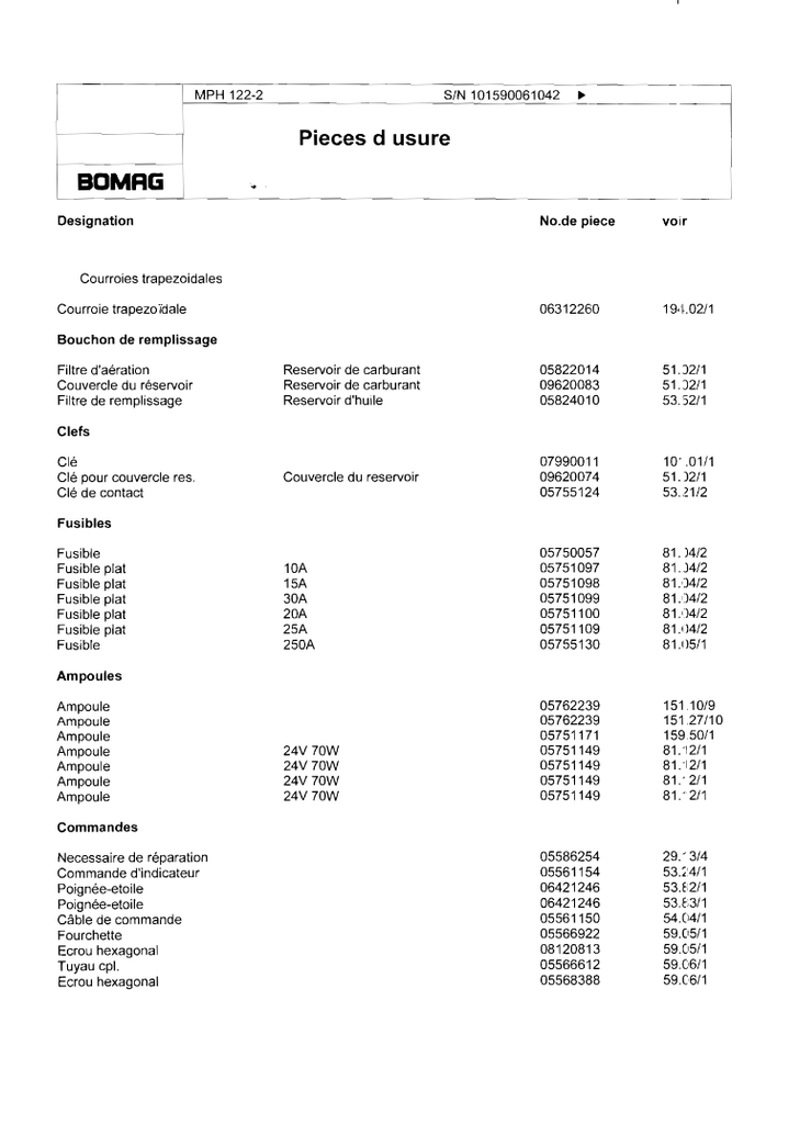 Download Complete Parts Catalogue Manual For Bomag MPH 122-2 Soil Stabilizer/Asphalt Recycler | S/N 101590061042