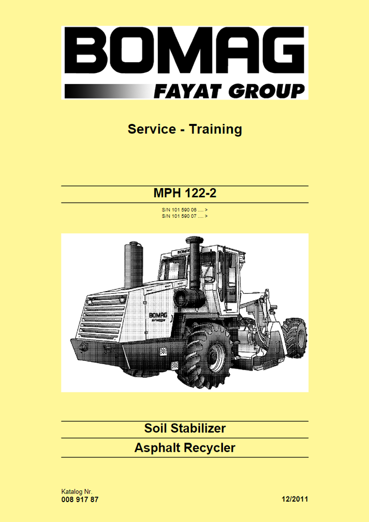 Download Complete Service Training Manual For Bomag MPH 122-2 Soil Stabilizer/Asphalt Recycler | S/N 101 590 06 - 101 590 07