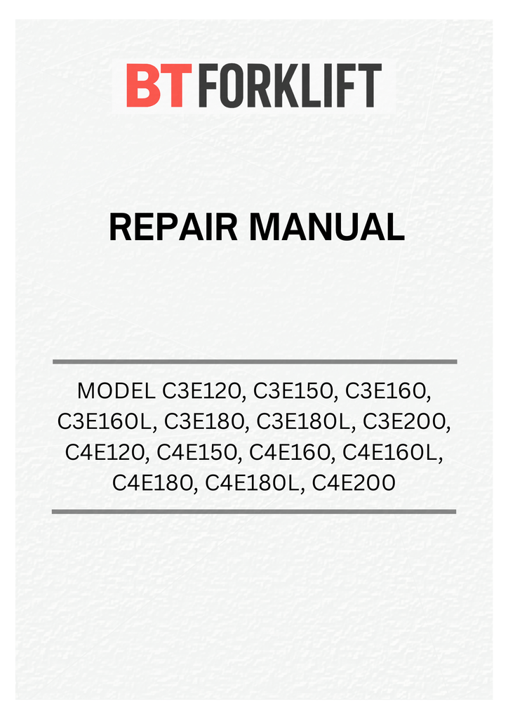 Download Repair Manual For BT Forklift Truck C3E120, C3E150, C3E160, C3E160L, C3E180, C3E180L, C3E200, C4E120, C4E150, C4E160, C4E160L, C4E180, C4E180L, C4E200 - PDF