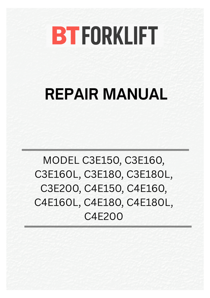 Download Repair Manual For BT Forklift Truck C3E150, C3E160, C3E160L, C3E180, C3E180L, C3E200, C4E150, C4E160, C4E160L, C4E180, C4E180L, C4E200 - PDF