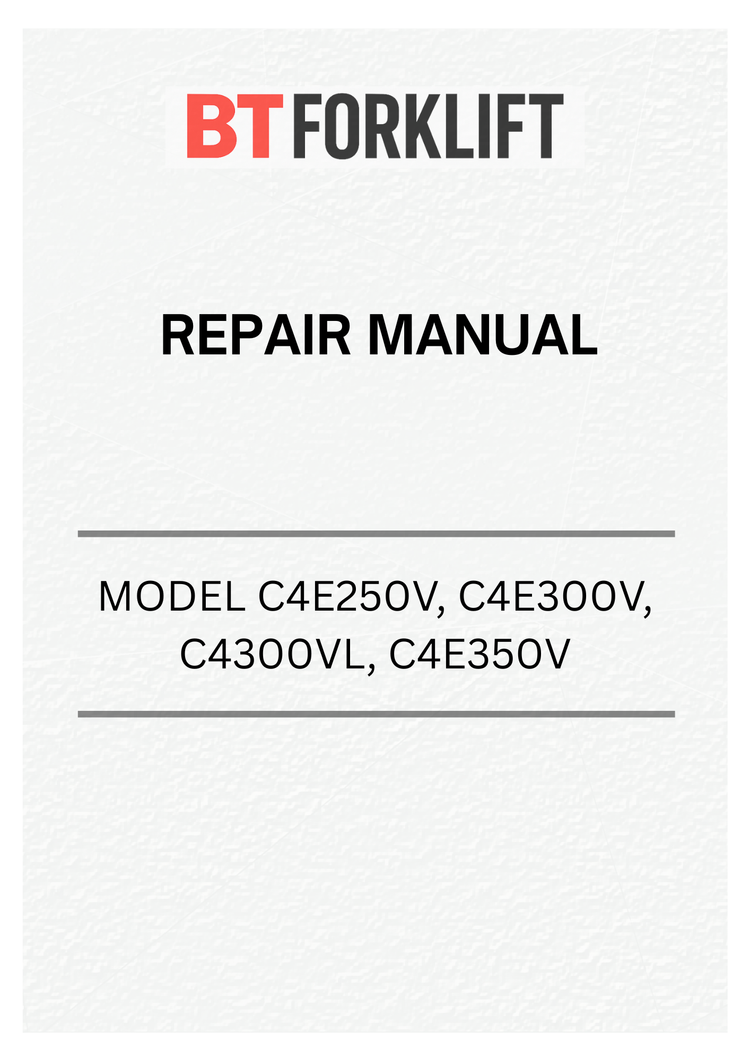 Comprehensive repair manual for BT forklift truck models C4E250V, C4E300V, C4300VL, and C4E350V. This detailed PDF guide covers maintenance procedures, troubleshooting, component specifications, and repair protocols essential for technicians and operators. Access critical information on hydraulic systems, electrical components, engine operation, and safety procedures. Ideal for workshop professionals, fleet managers, and authorized service centers requiring reliable technical documentation for efficient equipment maintenance and repair.