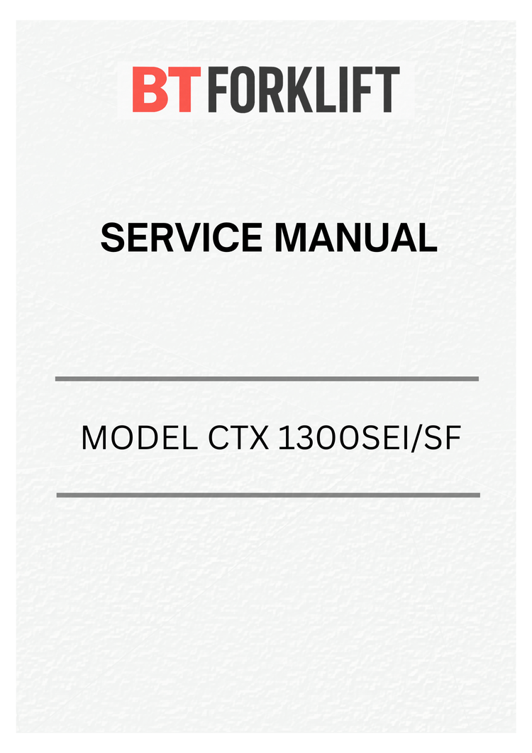 BT Forklift Truck CTX 1300SEI/SF Service Manual - PDF File Comprehensive service documentation for the BT CTX 1300SEI/SF forklift truck. This detailed PDF manual provides technicians and maintenance personnel with essential repair procedures, component specifications, troubleshooting protocols, and operational guidelines. Covers system diagnostics, mechanical adjustments, hydraulic maintenance, and safety procedures. An indispensable resource for authorized service centers and equipment operators requiring reliable technical reference material for optimal fleet performance and compliance.