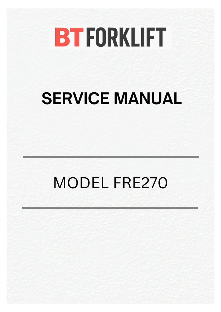 BT Forklift Truck FRE270 Service Manual - PDF File Comprehensive service documentation for the BT FRE270 forklift truck, designed for maintenance technicians and equipment operators. This PDF manual provides detailed technical specifications, troubleshooting procedures, component diagrams, and repair guidelines essential for optimal equipment performance and longevity. Access critical maintenance schedules, safety protocols, and operational best practices in a convenient digital format. Ideal for fleet managers, service departments, and authorized dealers requiring reliable reference material for the FRE270 model.