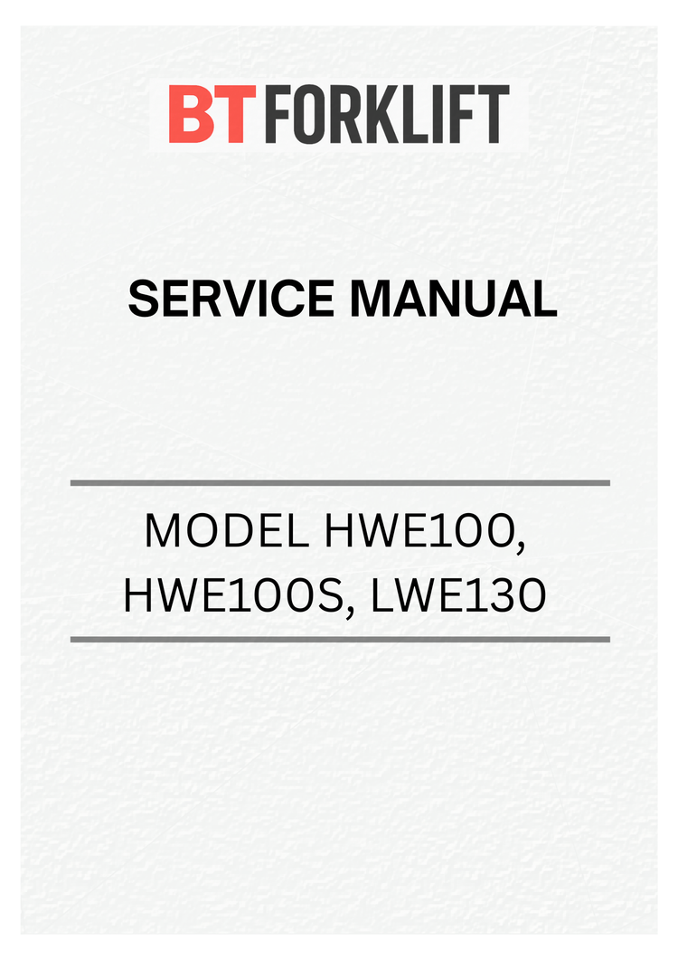 Comprehensive service manual for BT forklift trucks covering the HWE100, HWE100S, and LWE130 models. This PDF resource provides detailed technical documentation including maintenance procedures, troubleshooting guides, parts diagrams, and operational specifications. Essential for technicians, operators, and maintenance personnel requiring authoritative repair and service information. Instant digital download ensures immediate access to critical maintenance data for optimal equipment performance and longevity.
