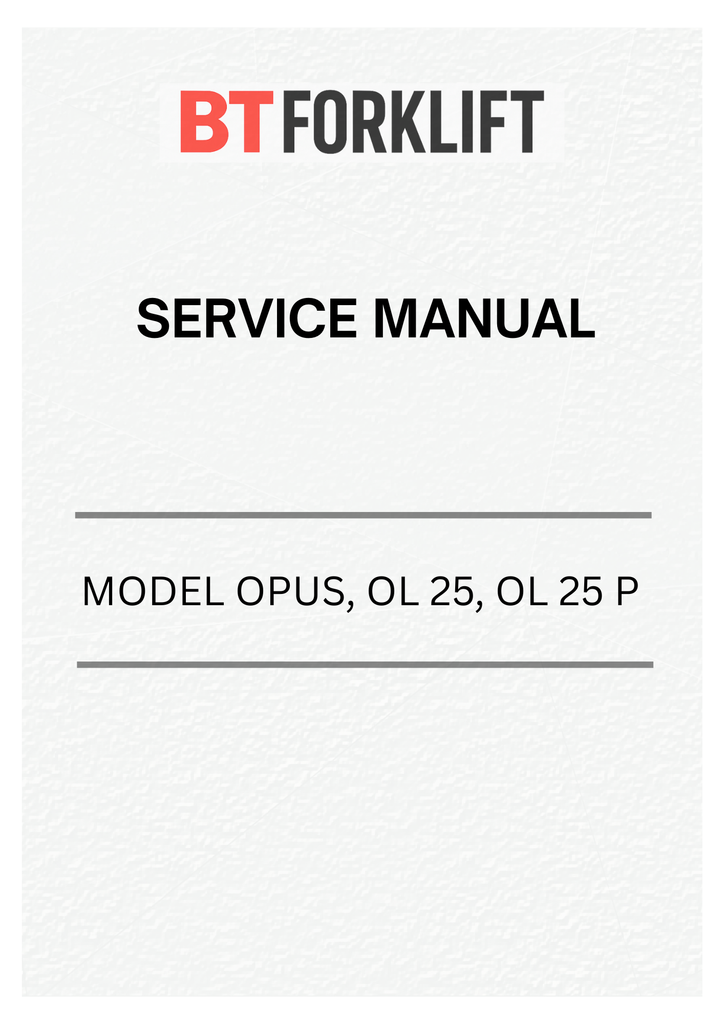 Comprehensive service manual for BT Forklift Truck OPUS and OL 25 series models. This PDF resource provides detailed technical documentation covering maintenance procedures, troubleshooting guides, parts identification, and operational specifications. Essential for technicians, operators, and maintenance teams requiring authoritative repair and service information. Ensures proper equipment upkeep and optimal performance across all OPUS and OL 25 variants. Digital format allows instant access and easy reference on any device.