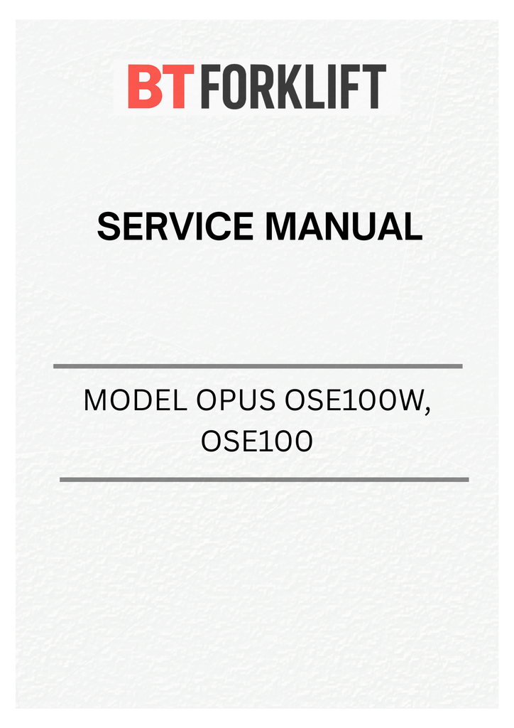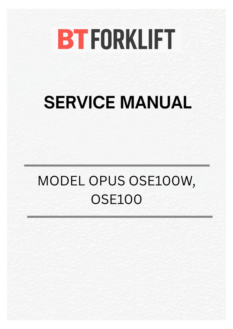 Comprehensive service manual for BT Forklift Truck OPUS OSE100W and OSE100 models. This PDF resource provides detailed technical documentation covering maintenance procedures, troubleshooting guides, parts identification, and operational specifications. Essential for technicians, operators, and maintenance personnel requiring authoritative repair and service information. Instant digital download ensures immediate access to critical equipment documentation for efficient fleet management and equipment upkeep.
