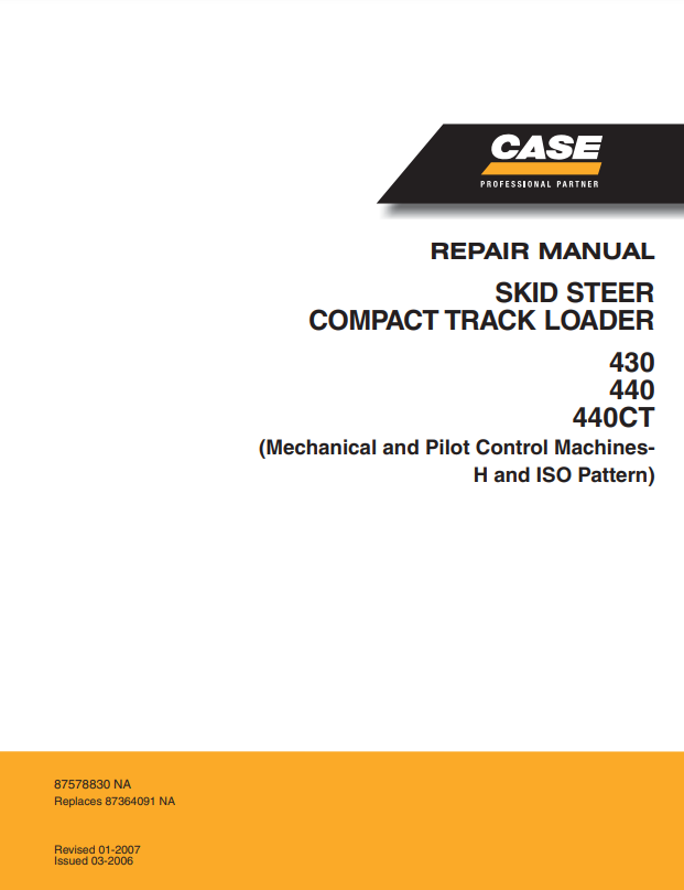 Download Complete Service Repair Manual For Case 430, 440 Skid Steer & 440CT Compact Track Loader | 87578830NAR0, 87364091 NA Issued 03-2006 (Revised 01-2007)