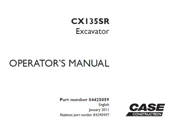 DOWNLOAD COMPLETE OPERATORS MANUAL FOR CASE CX135SR EXCAVATOR - PDF FILE