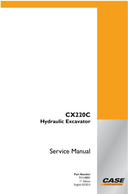 1. Enhance your maintenance and repair capabilities with the CASE CX220C Hydraulic Excavator Service Manual (Part Number: 71114551). This comprehensive guide is designed specifically for the CX220C model, providing you with detailed instructions and insights to keep your excavator running smoothly and efficiently.