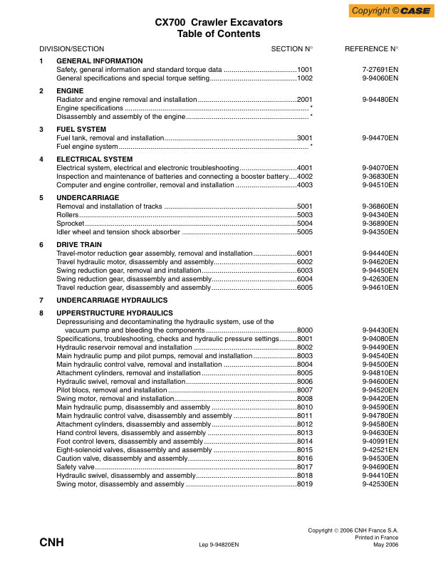 1. The CASE CX700 Crawler Excavator Service Manual (9-94820EN) is an essential resource for any operator or technician looking to maintain and repair their excavator with confidence. This comprehensive manual provides detailed instructions, diagrams, and specifications that ensure you have all the information needed to keep your machine running smoothly.