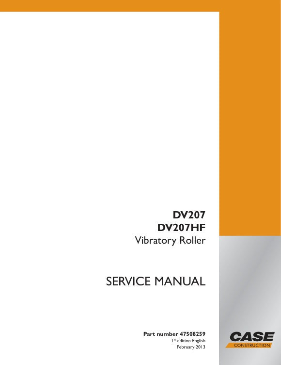 1. Ensure your CASE DV207 and DV207HF vibratory roller operates at peak performance with the comprehensive service manual (part number 47508259). This essential guide provides detailed instructions and insights, making maintenance and repairs straightforward and efficient.