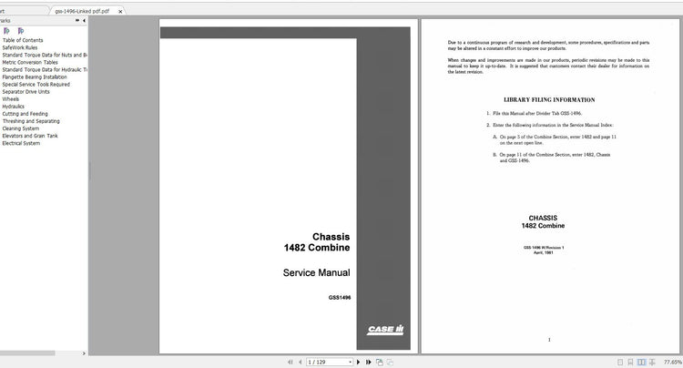 DISCOVER THE ULTIMATE RESOURCE FOR YOUR CASE IH 1482 COMBINE WITH THE COMPREHENSIVE SERVICE MANUAL GSS-1496, NOW AVAILABLE IN A CONVENIENT PDF FORMAT. THIS MANUAL IS DESIGNED TO PROVIDE YOU WITH DETAILED INSIGHTS AND STEP-BY-STEP INSTRUCTIONS, ENSURING THAT YOU CAN MAINTAIN AND REPAIR YOUR COMBINE WITH CONFIDENCE.