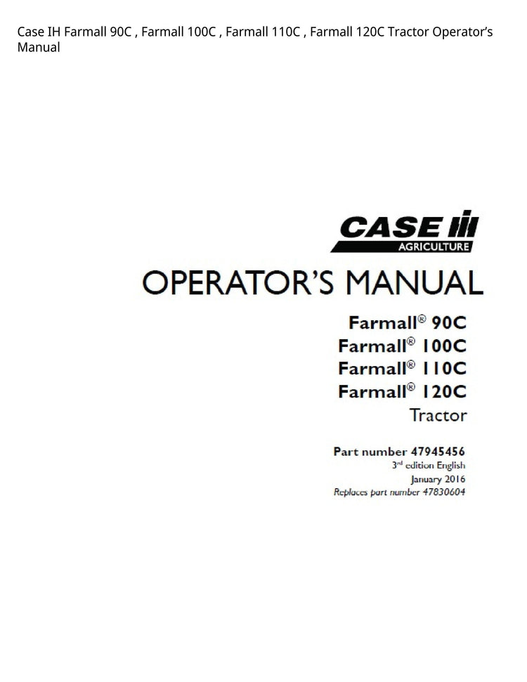 Case IH Farmall 90C, 100C, 110C, 120C Tractor Operator’s Manual 47945456 - PDF File