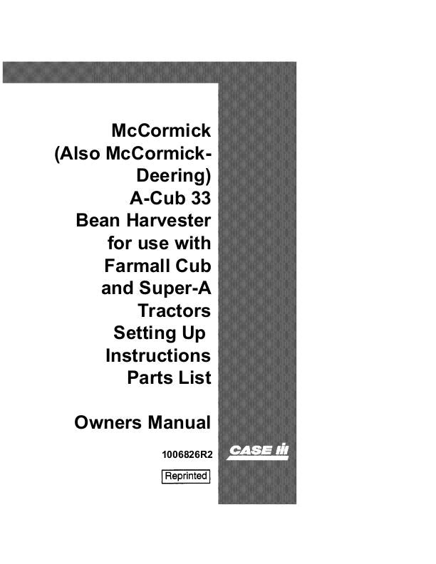 Case IHCUB-A- 33 Bean Farmall Operator's Manual 1006826R2 - PDF File Download