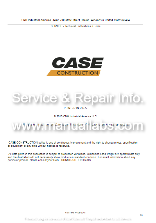 Get a quality service repair manual for your Alpha Series Skid Steer Loader and Compact Track Loader with Case SR210, SR240, SV280 Tier 4B (final) and Case TR270, TR310 Tier 4B (final). Expertly written and presented in PDF format, this manual offers reliable service information to keep your loaders functioning at peak performance.
