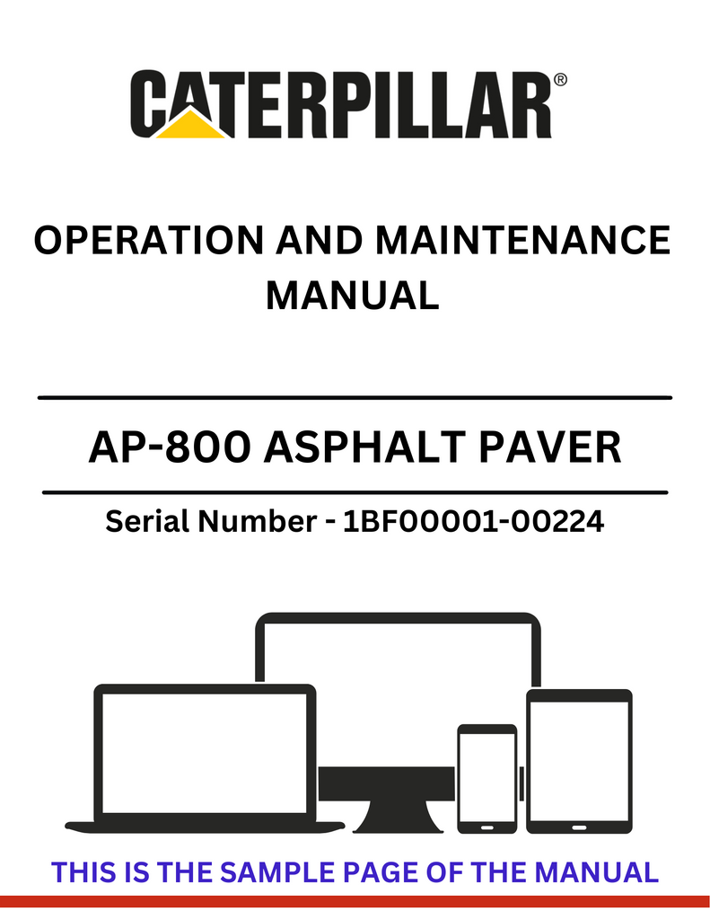 1. Discover the comprehensive CAT AP-800 Asphalt Paver Operation and Maintenance Manual. Essential guidance for serial numbers 1BF00001-00224 to ensure optimal performance.