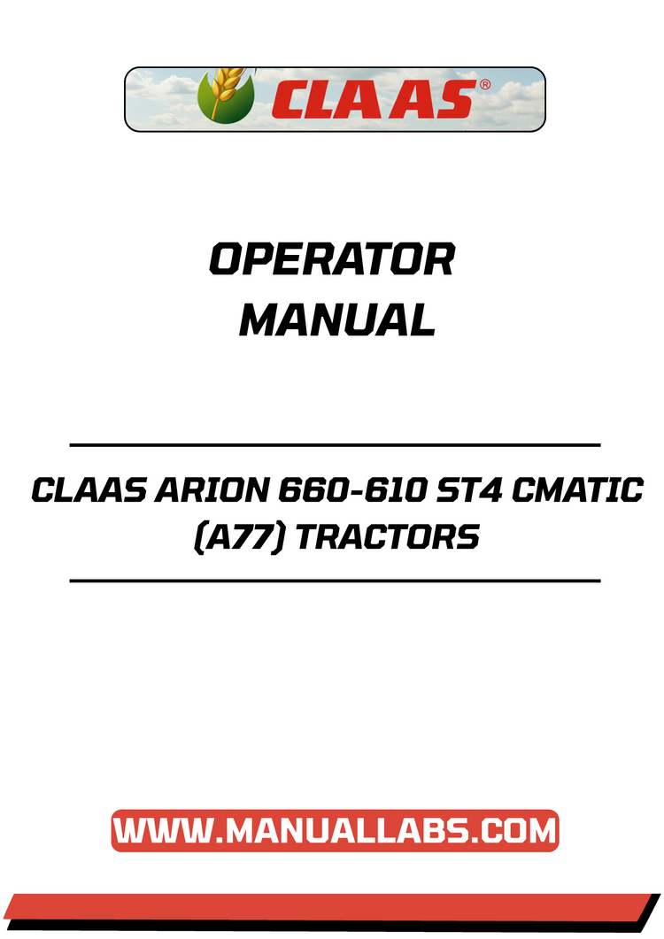 1. UNLOCK THE FULL POTENTIAL OF YOUR CLAAS ARION 660-610 ST4 CMATIC TRACTOR WITH OUR COMPREHENSIVE OPERATOR MANUAL IN PDF FORMAT. THIS ESSENTIAL GUIDE PROVIDES DETAILED INSTRUCTIONS AND INSIGHTS TO HELP YOU OPERATE YOUR TRACTOR EFFICIENTLY AND SAFELY, ENSURING OPTIMAL PERFORMANCE IN EVERY TASK.