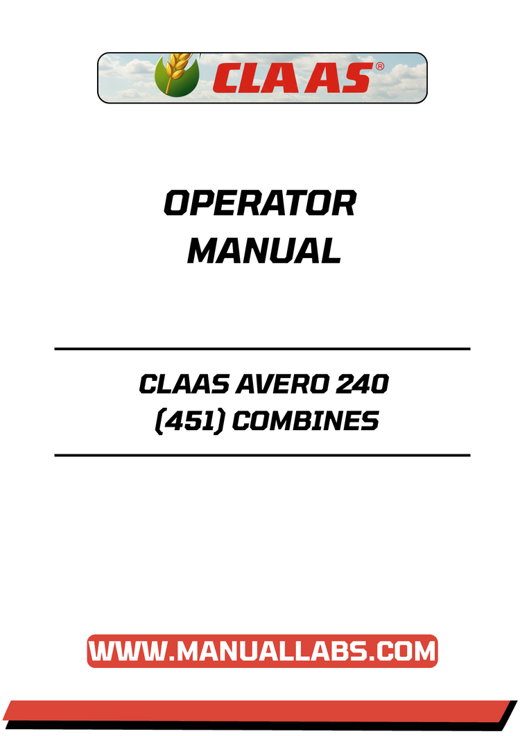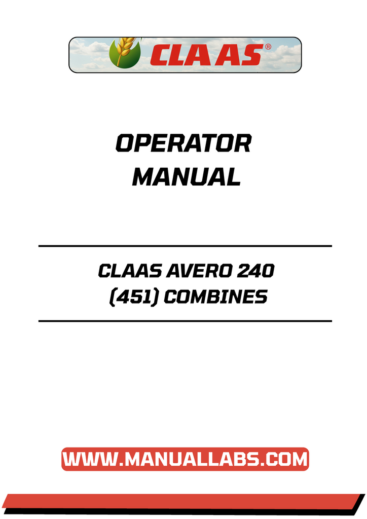 UNLOCK THE FULL POTENTIAL OF YOUR CLAAS AVERO 240 (451) COMBINE WITH OUR COMPREHENSIVE OPERATOR MANUAL IN PDF FORMAT. THIS ESSENTIAL GUIDE PROVIDES DETAILED INSTRUCTIONS AND INSIGHTS TO HELP YOU OPERATE YOUR MACHINE EFFICIENTLY AND EFFECTIVELY, ENSURING OPTIMAL PERFORMANCE DURING HARVEST SEASON.
