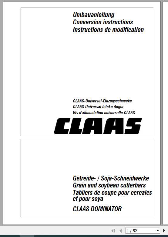 DOWNLOAD COMPLETE INSTRUCTIONS MANUAL CLAAS COMBINES DOMINATOR CONVERSION - PDF FILE