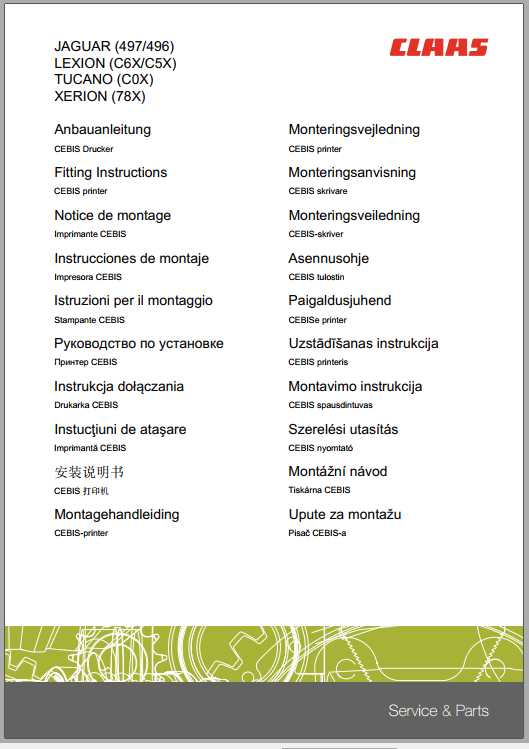 UNLOCK THE FULL POTENTIAL OF YOUR CLAAS MACHINERY WITH THE COMPREHENSIVE FITTING INSTRUCTION MANUAL FOR THE JAGUAR, LEXION, TUCANO, AND XERION MODELS. THIS PDF FILE IS DESIGNED TO PROVIDE YOU WITH DETAILED GUIDANCE, ENSURING THAT YOU CAN EFFICIENTLY INSTALL AND MAINTAIN YOUR EQUIPMENT WITH CONFIDENCE.