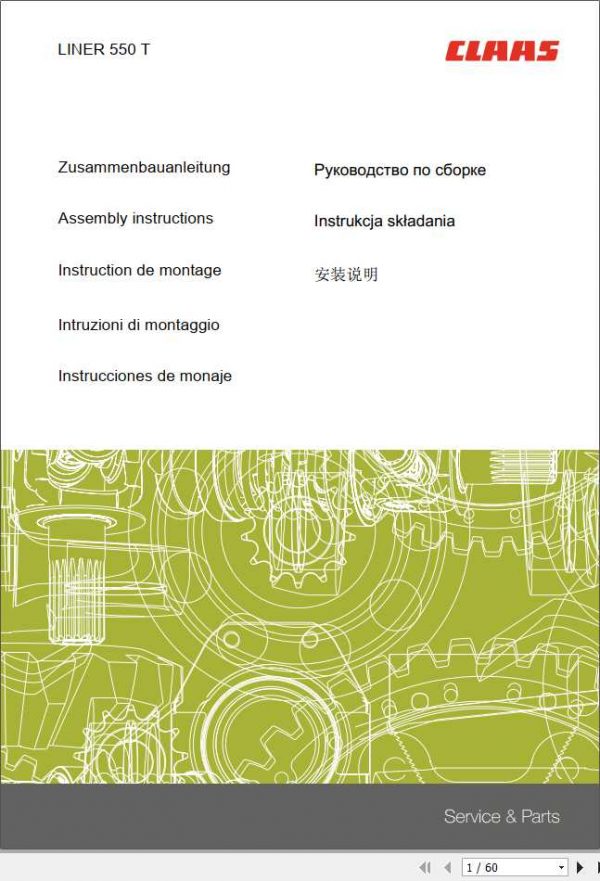 DOWNLOAD COMPLETE ASSEMBLY INSTRUCTION MANUAL CLAAS SWATHERS LINER 550T 0002925631 - PDF FILE
