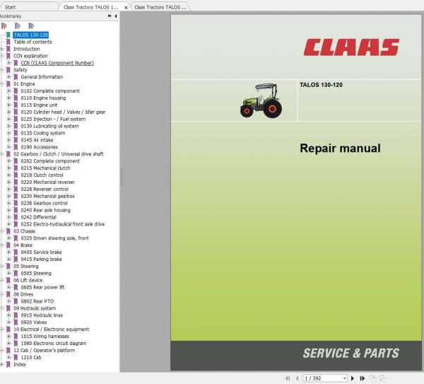 UNLOCK THE FULL POTENTIAL OF YOUR CLAAS TRACTORS TALOS 130 – 120 WITH OUR COMPREHENSIVE REPAIR MANUALS AVAILABLE IN A CONVENIENT PDF FORMAT. THIS ESSENTIAL RESOURCE IS DESIGNED TO PROVIDE YOU WITH DETAILED INSTRUCTIONS AND INSIGHTS, ENSURING THAT YOU CAN MAINTAIN AND REPAIR YOUR TRACTOR WITH CONFIDENCE.