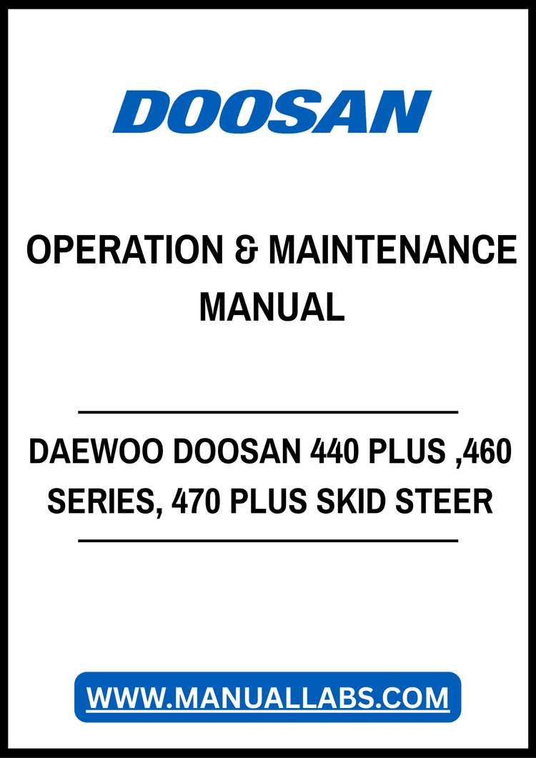 1. Discover the essential DAEWOO DOOSAN 440 PLUS, 460 SERIES, and 470 PLUS Skid Steer Loader Operation & Maintenance Manual in a convenient PDF format. This comprehensive guide is designed to enhance your understanding of your skid steer loader, ensuring optimal performance and longevity.
