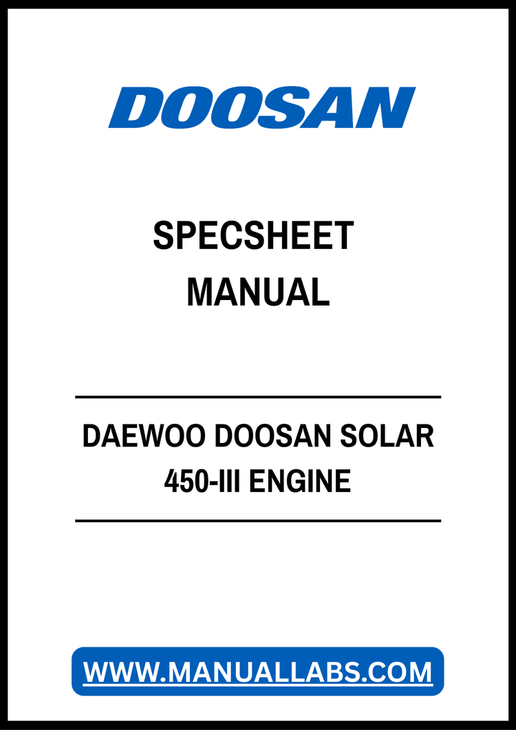 1. Discover the comprehensive DAEWOO DOOSAN SOLAR 450-III Engine Specsheet Manual, available in a convenient PDF format. This essential resource provides detailed specifications and insights into the performance and capabilities of the SOLAR 450-III engine, making it an invaluable tool for engineers, technicians, and operators alike.