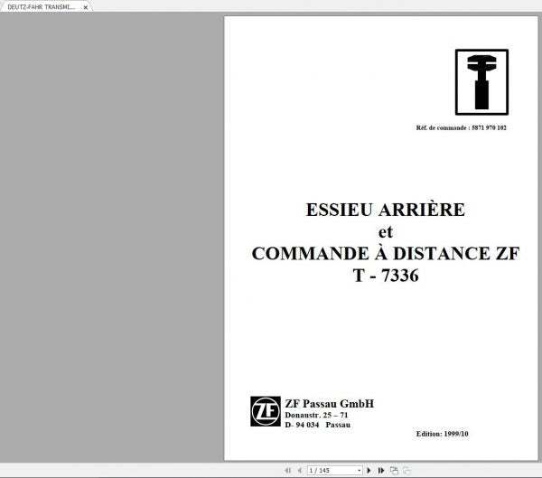 UNLOCK THE FULL POTENTIAL OF YOUR DEUTZ-FAHR MACHINERY WITH THE ZF T-7336 TRANSMISSION WORKSHOP MANUAL. THIS COMPREHENSIVE PDF FILE IS DESIGNED TO PROVIDE YOU WITH DETAILED INSIGHTS AND STEP-BY-STEP INSTRUCTIONS FOR MAINTAINING AND REPAIRING YOUR TRANSMISSION SYSTEM, ENSURING OPTIMAL PERFORMANCE AND LONGEVITY.