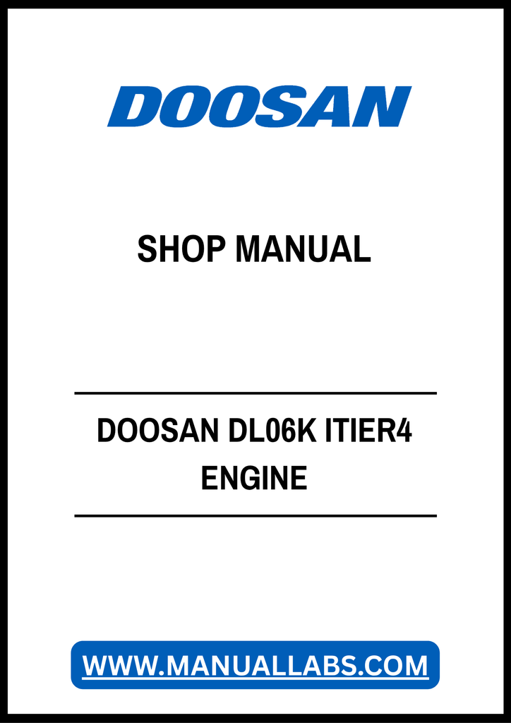 1. Unlock the full potential of your DOOSAN DL06K ITIER4 engine with our comprehensive Shop Manual, available in a convenient PDF format. This essential resource is designed for mechanics and enthusiasts alike, providing detailed insights into the engine's specifications, maintenance procedures, and troubleshooting techniques.
