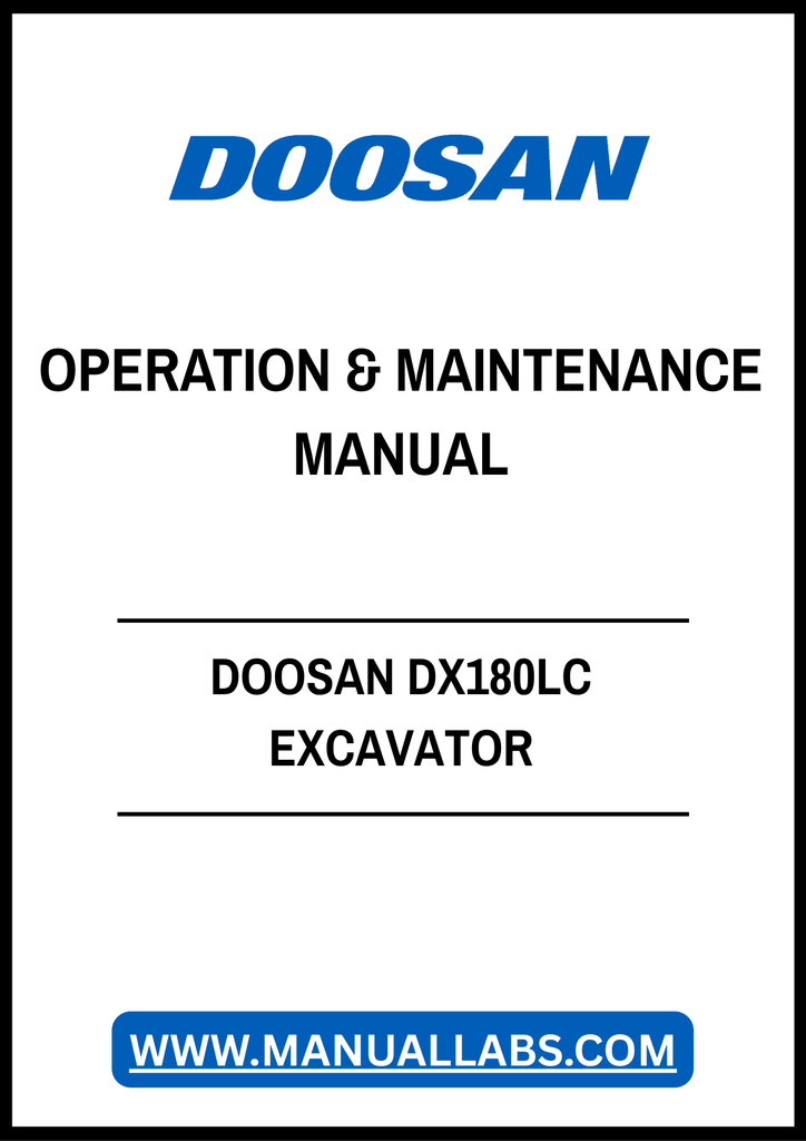 1. Unlock the full potential of your DOOSAN DX180LC Excavator with our comprehensive Operation & Maintenance Manual, available in a convenient PDF format. This essential guide provides detailed instructions and insights to ensure optimal performance and longevity of your equipment.
