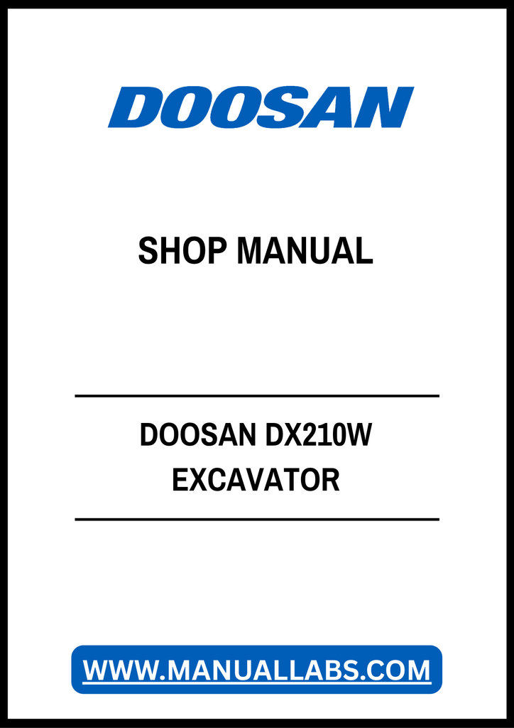 1. Unlock the full potential of your DOOSAN DX210W Excavator with our comprehensive Shop Manual in PDF format. This essential resource provides detailed insights into the machine's operation, maintenance, and troubleshooting, ensuring you can keep your excavator running smoothly and efficiently.