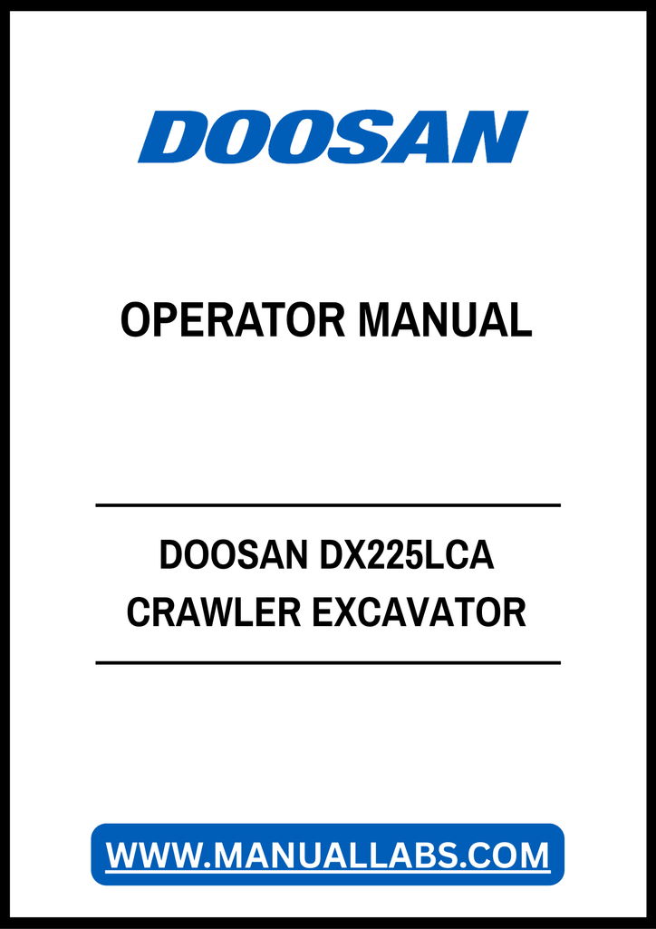 1. Unlock the full potential of your DOOSAN DX225LCA Crawler Excavator with our comprehensive Operator Manual in PDF format. This essential guide provides detailed instructions and insights to help you operate your machine safely and efficiently, ensuring optimal performance on every job site.