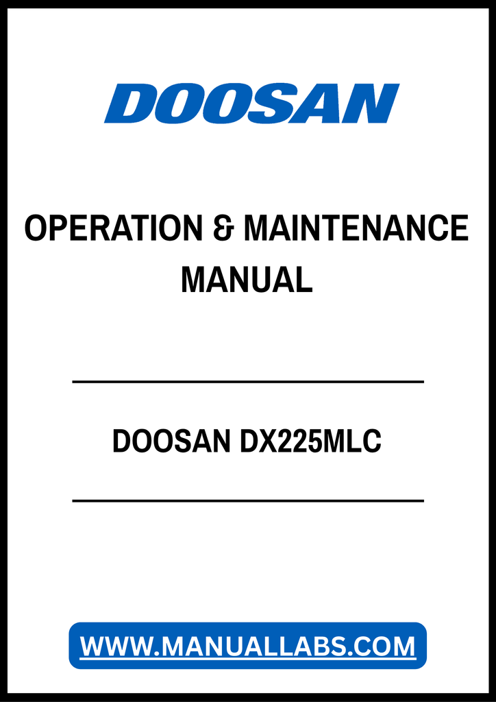 1. Unlock the full potential of your Doosan DX225MLC with our comprehensive Operation & Maintenance Manual, available in a convenient PDF format. This essential guide provides detailed instructions and insights to ensure optimal performance and longevity of your machinery.