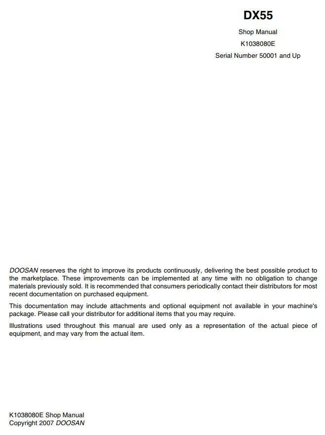 Doosan DX55 Excavator Workshop Service Repair Manual (SN. from 50001)